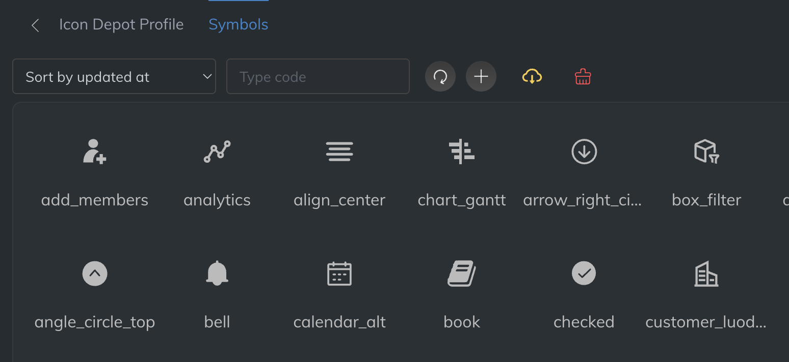 • Download SVG Symbols in formats compatible with ReactJS and Flutter.