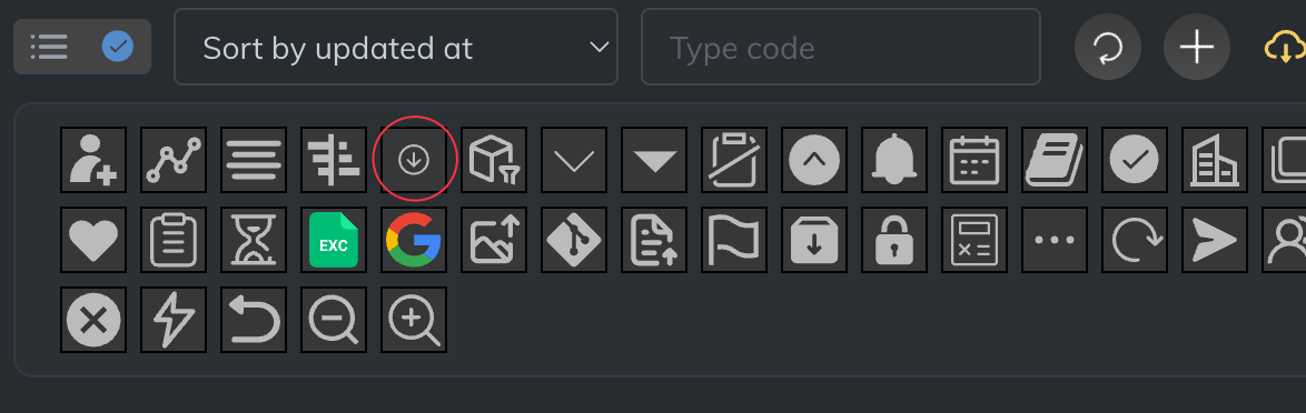 • circle-arrow-down: Circle outside + Arrow + Direction