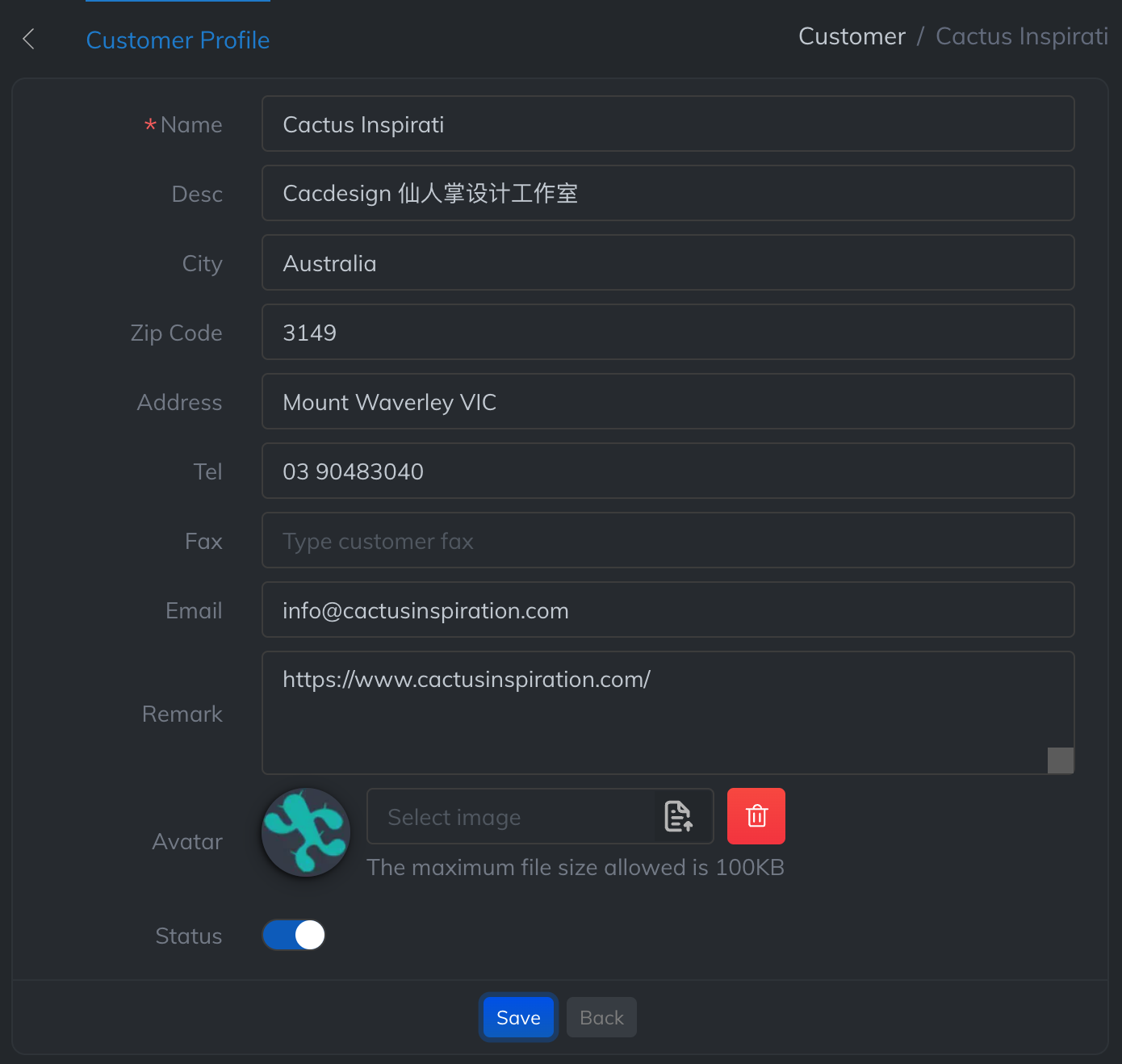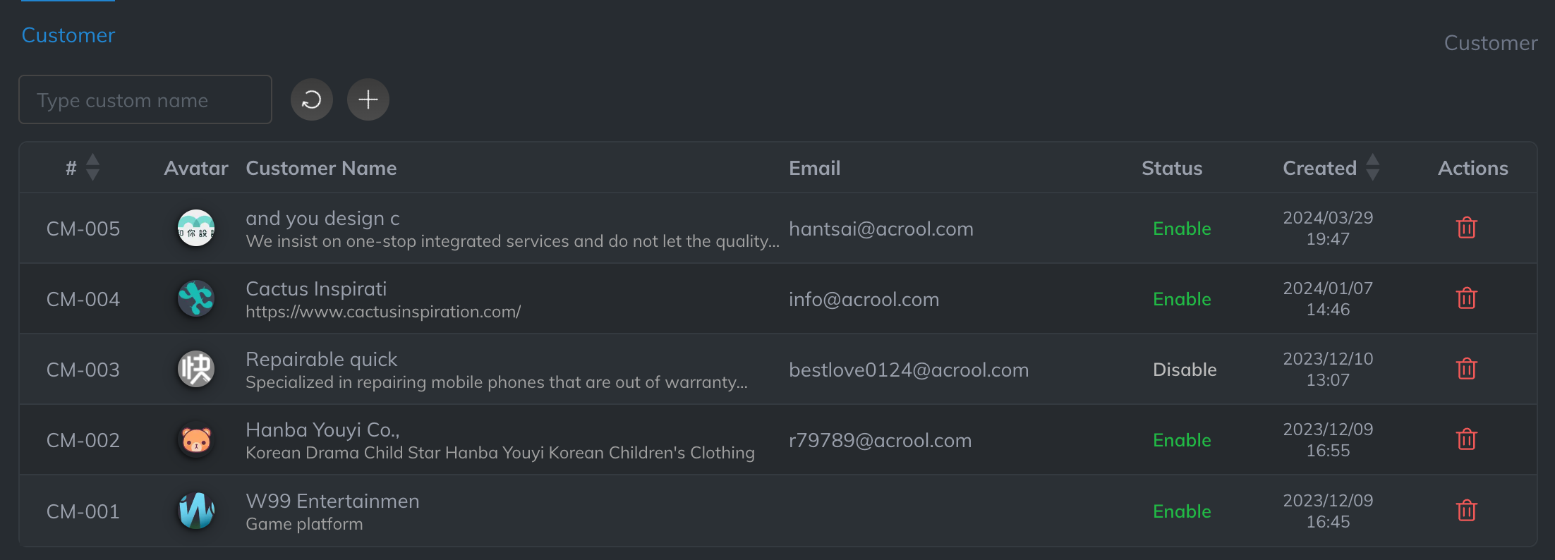 CustomerOn this pageCustomer Here you can add your customer information, use the designation in the project, and display the customer information in the project quotation Enter from Workspace: 1. Manage customer list 2. Add your customer 3. View & Edit customer profile