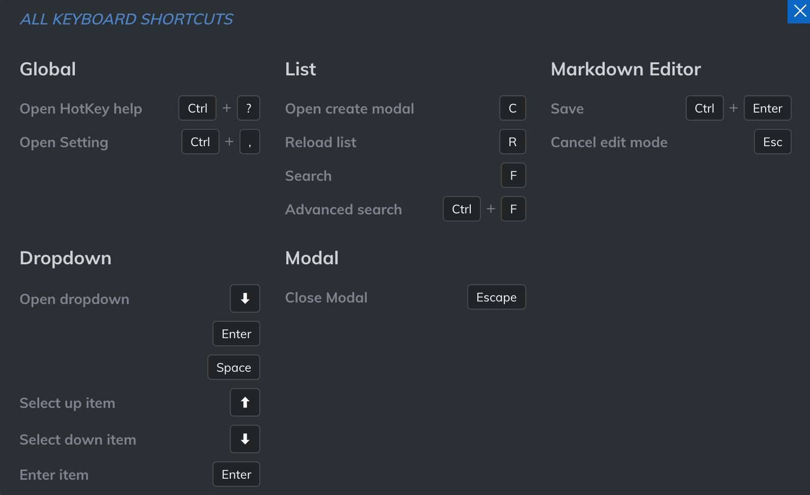 When you are in the Markdown editor, you can quickly cancel and save