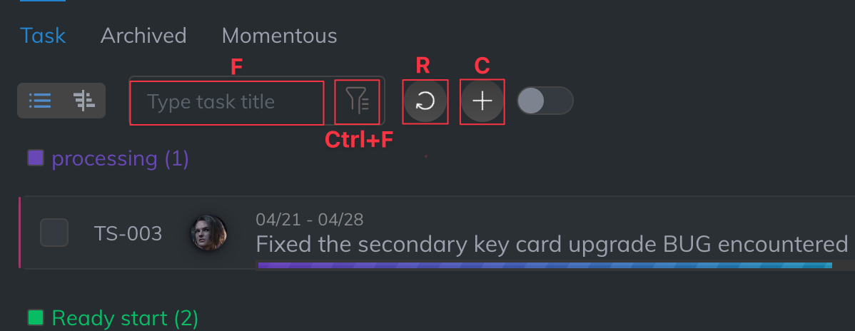 The shortcut keys here are to allow us to speed up task editing and not waste tedious thoughts between the keyboard and the mouse.