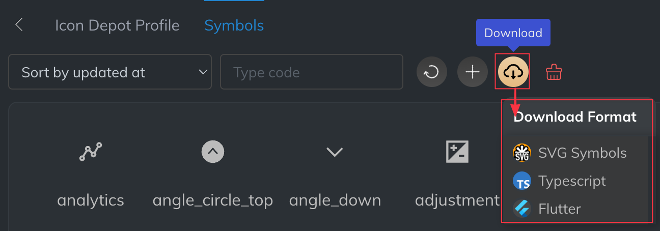 How to use Icon Symbols in a project with type-safe Enum, first download Typescript format
