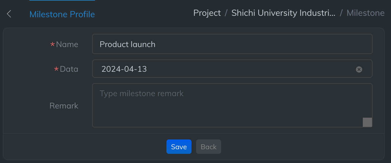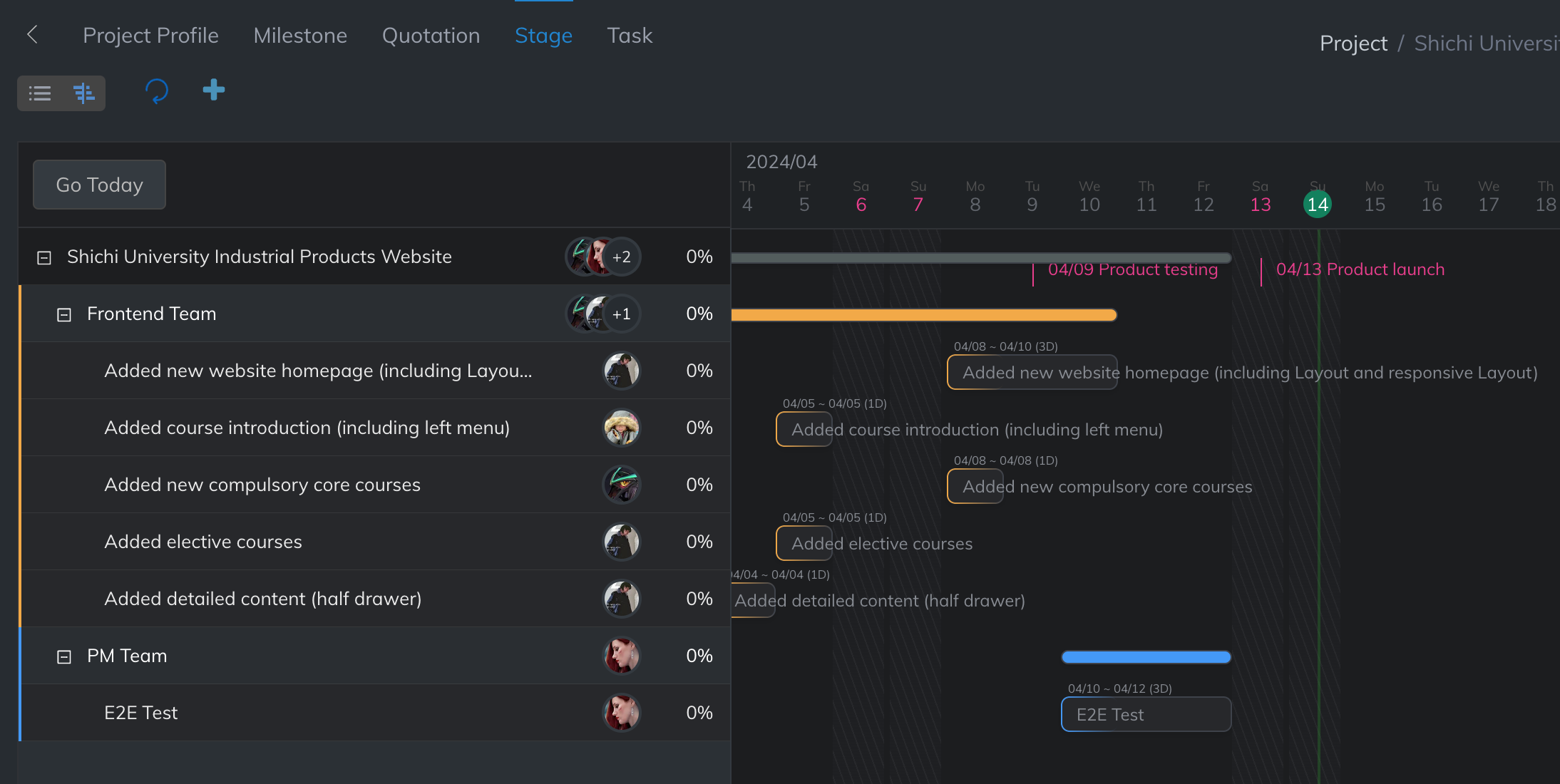 Here you can add project milestones to assist in displaying various time points to help Gantt with scheduling issues.