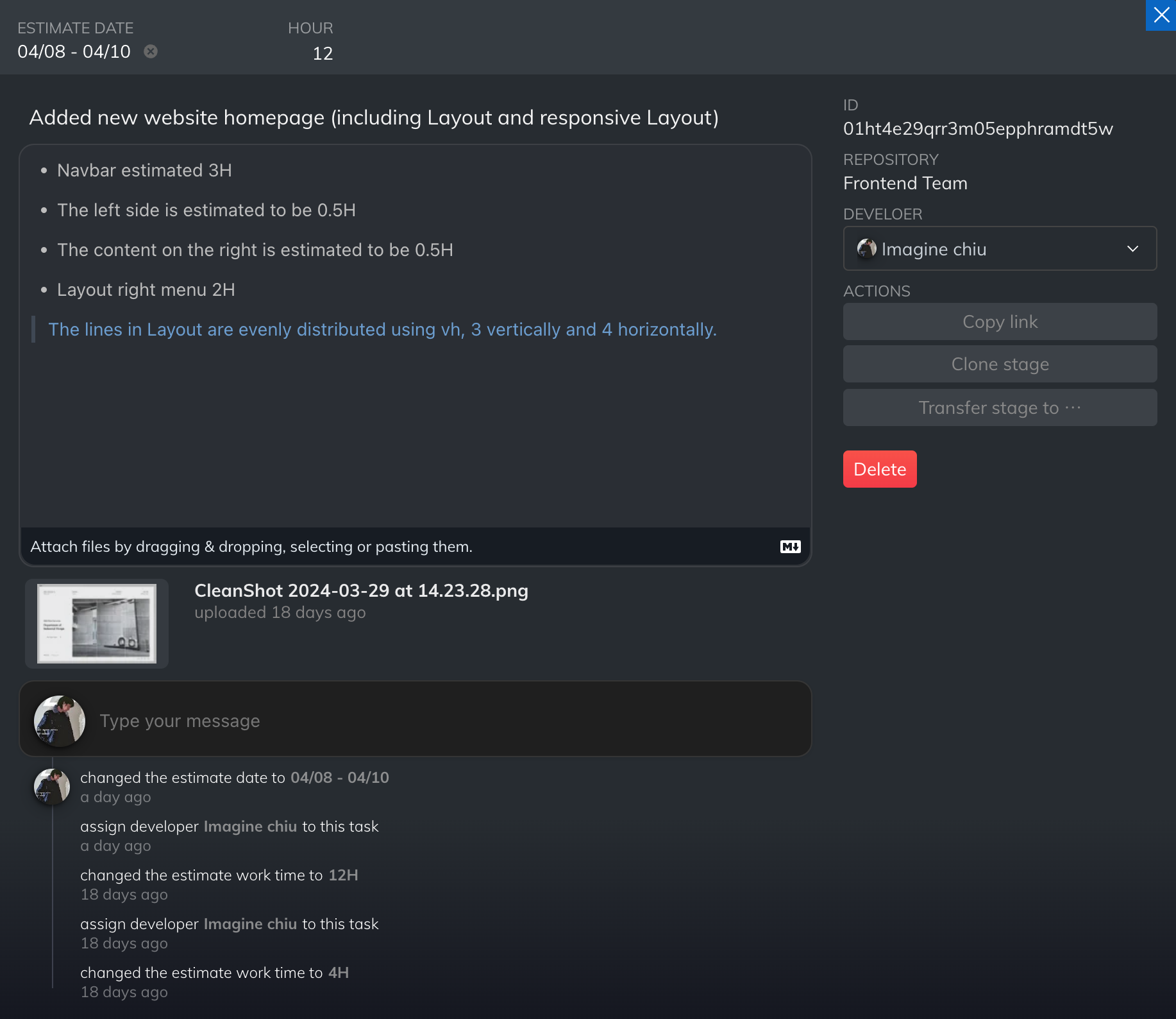 The difference from Task is that it is in the evaluation phase and may not be executed, and the Repository has not been created (no selection required),and can assign all members of the workspace
