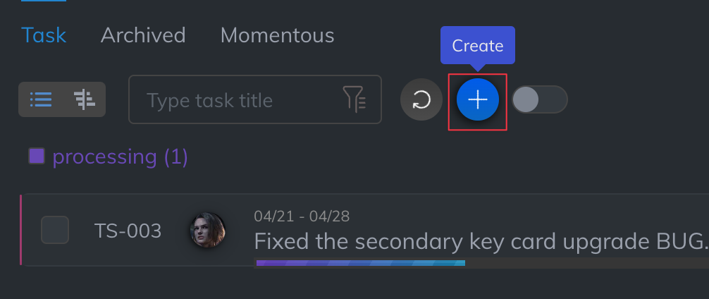 When the task status changes to In Progress, your ongoing tasks will appear directly on the lower left, so that you can see your assigned ongoing tasks the next time you enter.