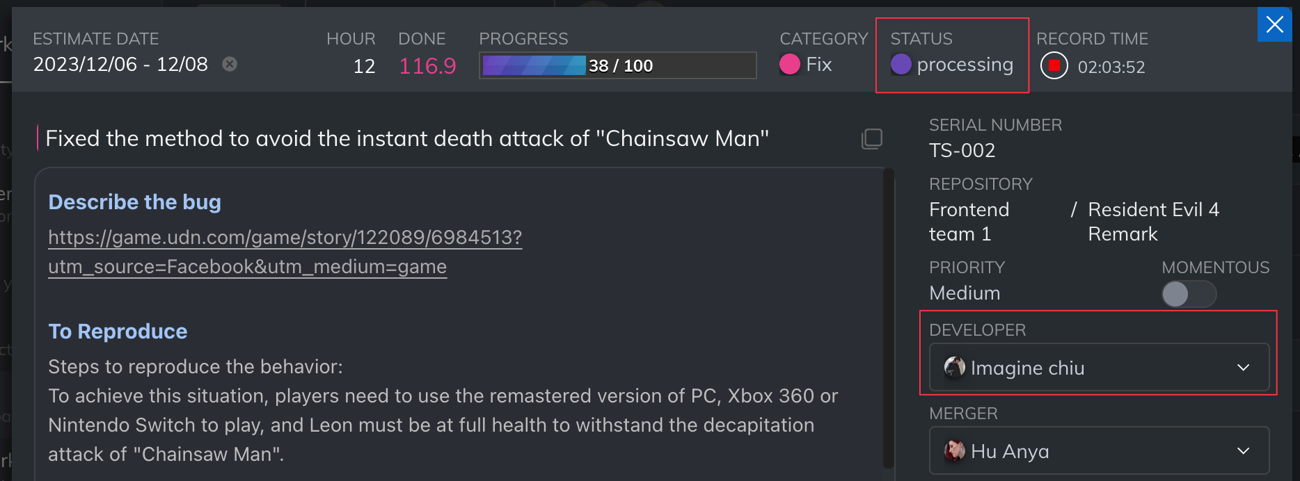 We can identify the task status directly from the list: Feature, Fixed, Refactor