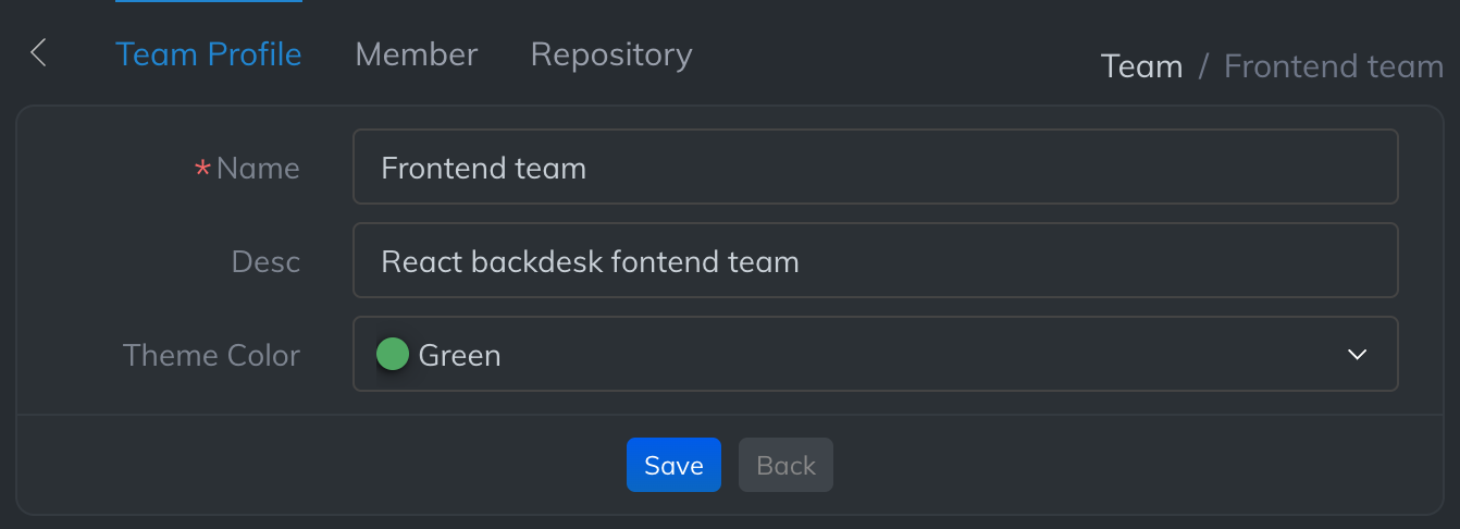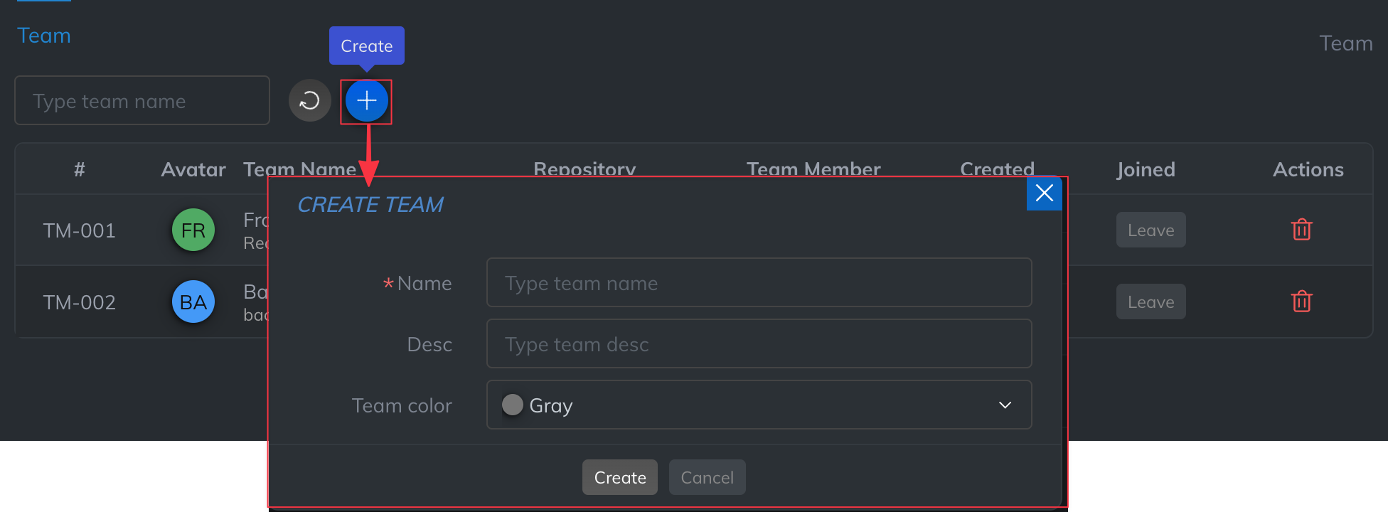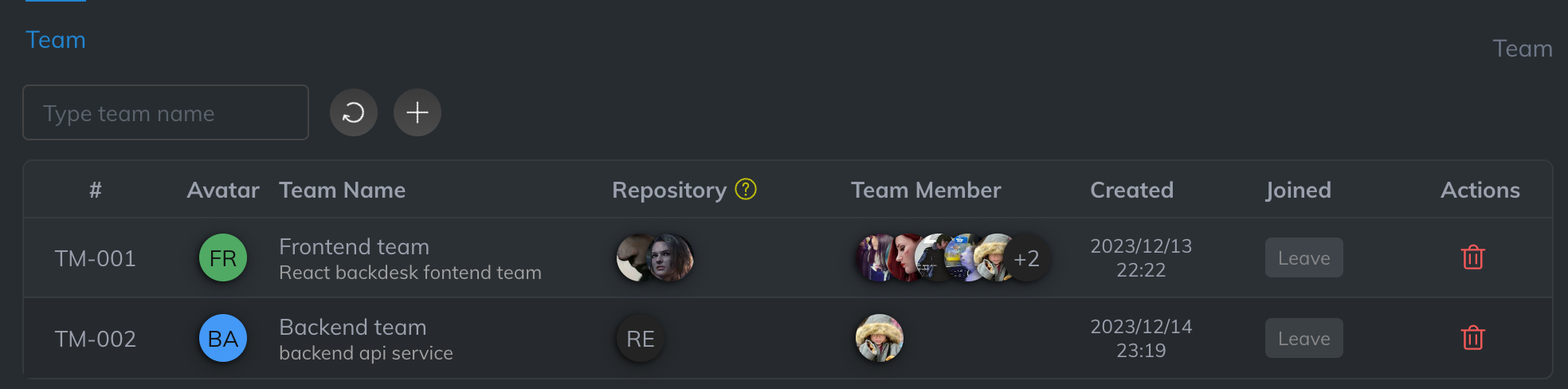 Use the add button to add your team. Usually we add it according to the actual situation, such as product team, back-end team, front-end team, Prozy team, DBA team